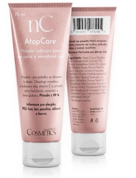 AtopCare je z 99 % přírodní, obsahuje kokosový a mandlový olej a ovesný extrakt, který zklidňuje podrážděnou kůži. Bez parfemace, parabenů a jiných dráždivých látek.
