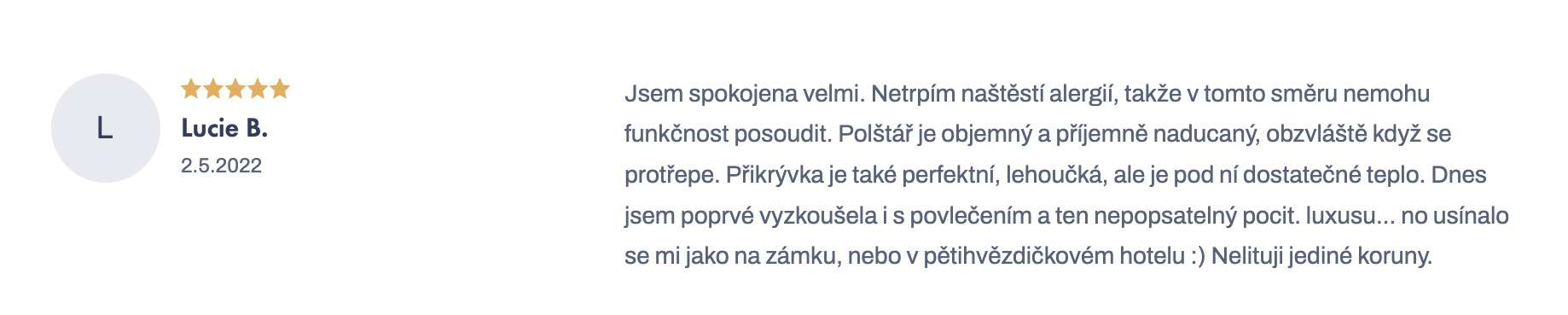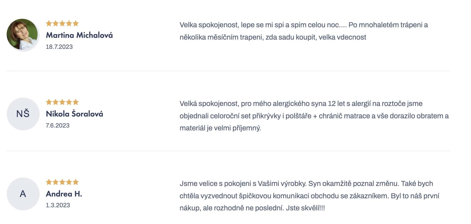 Pročítali jsme si i veřejně dostupné recenze a jsme rádi, že náš názor sdílí další spokojení zákazníci nanoSPACE. Hlavním přínosem jsou protiroztočové lůžkoviny pro alergiky, neudělají s nimi chybu ale ani ti, kteří s alergickou reakcí potíže nemají.